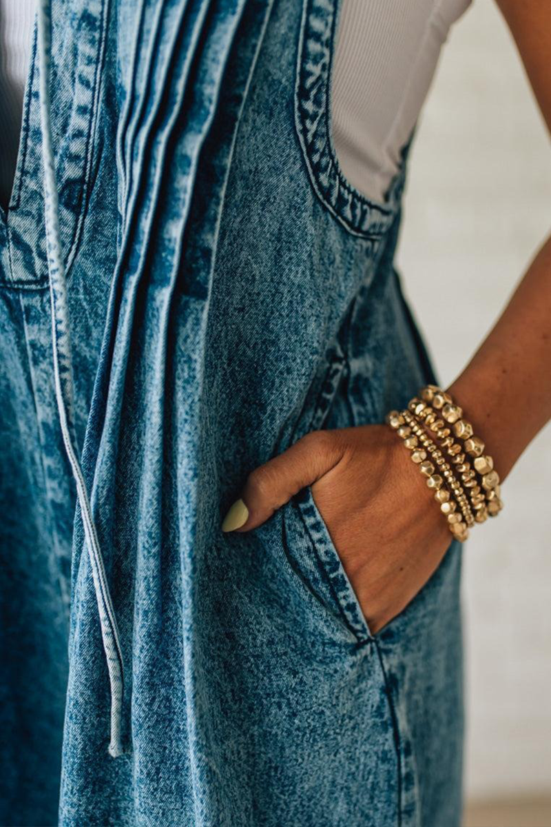 Ladies' Shoulder Strap Hollow Splicing Pleated Casual Jumpsuit